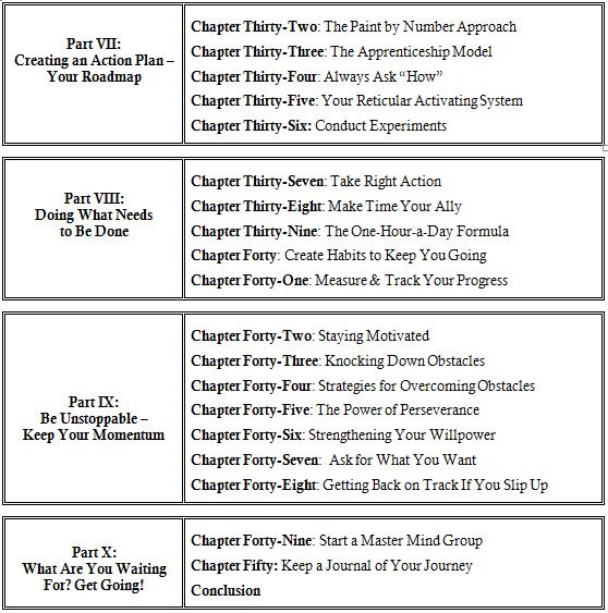 - Discover how to create a plan for achieving your goals that's so foolproof it's almost like a paint-by-number kit, telling you exactly what 'color' to put where. This is in Chapter Thirty-Two.
