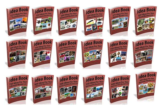 The "Idea Book" series is comprised of 18 eBooks, containing a total of 10,000 bucket list ideas. You'll discover all of the inspiration that you'll need to create a bucket list--dream list, wish list, or life list--that will make you feel happy to be alive!
